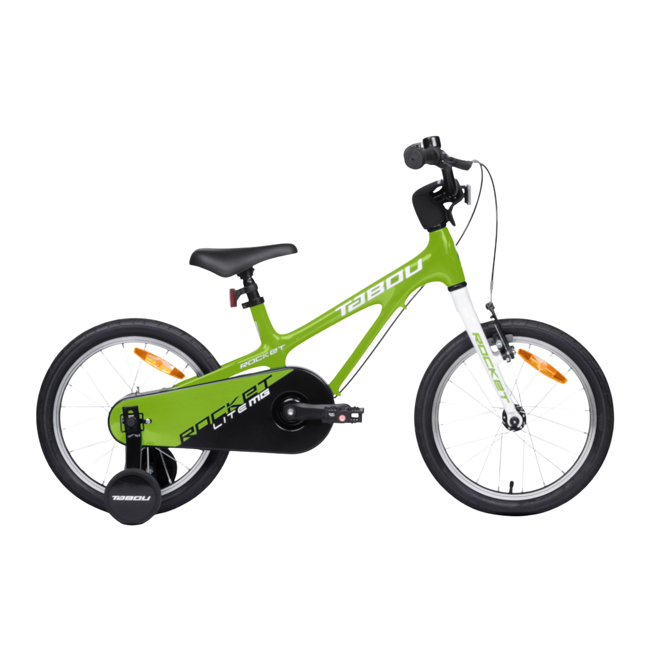 Tabou Rocket Lite MG är en ultralätt cykel för pojkar. Ett utmärkt sätt att tillbringa tid utomhus och påbörja ett cykeläventyr. Designad för att erbjuda maximal säkerhet och komfort under cykling. Rocket Lite MG-ramen är tillverkad av magnesium och gaffel, fälgar och vevar är tillverkade av aluminium för hållbarhet. Klassiska V-bromsar används på styret för att säkerställa bromsning under alla förhållanden.