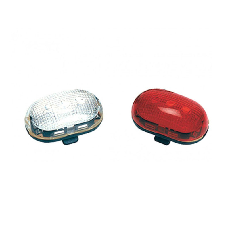 Union UN-404 lysæt indeholder to lamper, en hvid og en rød, med tre forskellige lysindstillinger. Lamperne har 3 LED-pærer og er nemme at montere på cyklen.