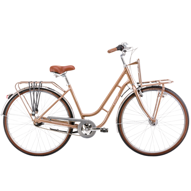Romet Luiza Lux cykel är för kvinnor som älskar stil och praktisk användning i ett. Med en mjuk och bred sadel, stora 28-tums hjul och balanserad ramgeometri är Luiza en mycket bekväm cykel att sitta och cykla med rak rygg. Praktiskheten förstärks av två robusta pakethållare (fram och bak), kedjeskydd, stänkskärmar, belysning och stöd.