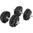 Håndvægt sæt med vægtskiver i cement, håndvægtsstænger med en diameter på 30 mm og en totalvægt på 20 kg. Denne pakke er en bestseller og klarer sig rigtig godt i hjemmet.