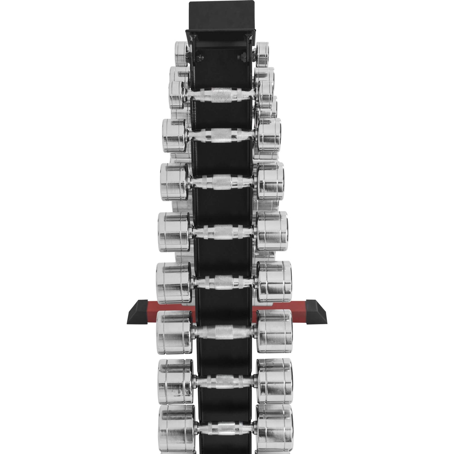 Hantelstället er 112 cm højt, har plads til din hantelpar og klarar en belastes med 150 kg.