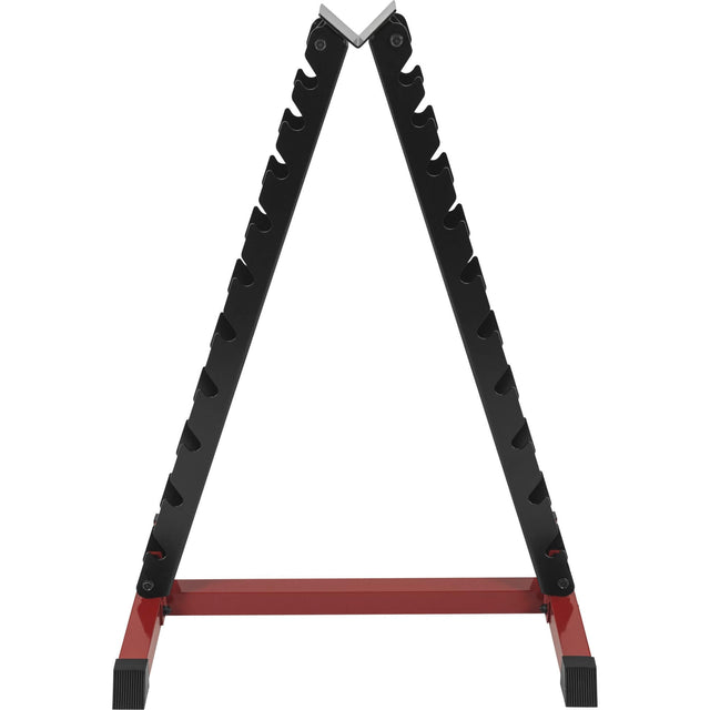 Med den her triangulära udformning på vores hantelställ kan du enkelt skabe ordning og det bliver både dekorativt og pladsbesparende.