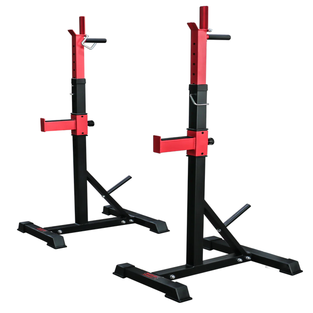 Perfekt til brug med leg curls, roning og militærpres. Det er fantastisk at placere en træningsbænk mellem de to stativer. Højden på vægtstangsstativet kan justeres, så du kan få den perfekte højde for dig.