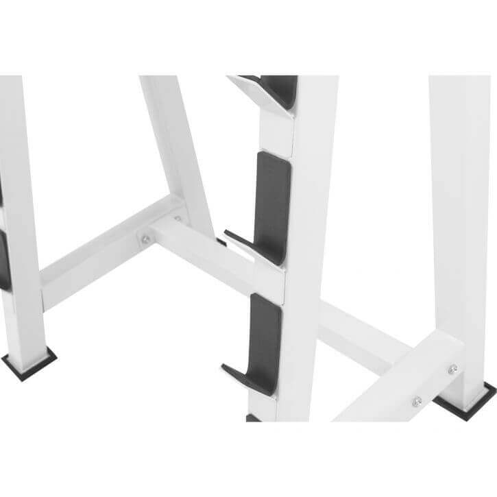Afstanden mellem racken er 17,5 cm, så der er plads til at have vægt på skivestængerna. Ligger dem desuden i en "sicksack"-mønster i stedet for at det ligger præcist ovanför hinanden får du plats med en større viktskivor på stången.
