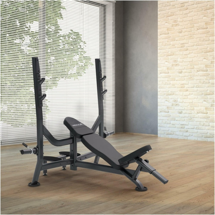 Tag din træning til næste niveau med vores moderne skråbænk. Den har sikkerhedsstænger, der gør det muligt at træne sikkert derhjemme, så du kan maksimere din styrketræning på egen hånd.