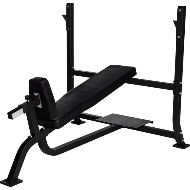 Bänkpressen har tre gummerade fötter så den står stadigt og også en platta for muligheden at ha en som passer dig i din træning.