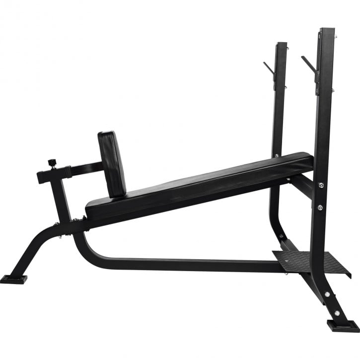 Till den sneda bänkpressen anbefaler vi att du köper en skivstång med vikter och då förslagsvis skivstång och viktskivor . Vigtigt bare at grepplängden på skivstången er længere end 130 cm i øvrigt går det bh med både 30/31 mm og 50/51 mm.
