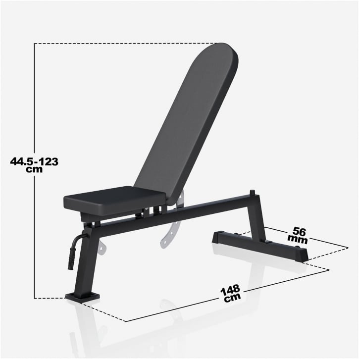Ryg og sæde er justerbart. På den måde kan du tilpasse vinklen afhængig af hvilken øvelse du skal træne. Sædet og ryggen låses fast i valgt stilling med låsebolte. Disse er gennemgående (i stammerne), og kan også låses ved at vride på selve skruen.