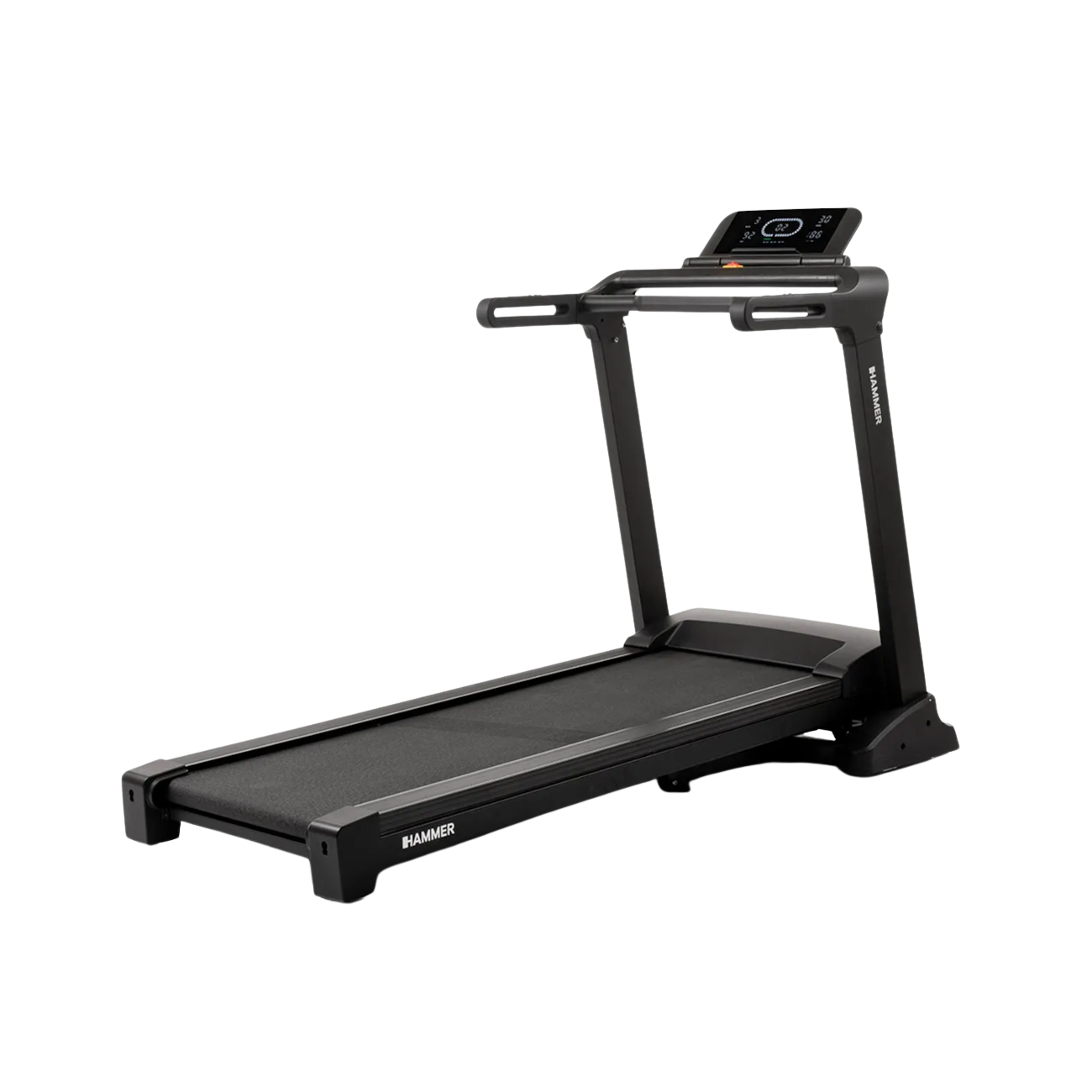 Upplev ett helt nytt löppass med Hammer FlyRun 4.0 löpband. Med en maximal effekt på 5,5 hk erbjuder denna modell maximala hastigheter på upp till 24 km/h. Den extra breda löpbanan på 152 x 50 cm gör att du kan träna bekvämt och säkert. Tack vare digital anslutning kan du träna med appar som Kinomap och Zwift. Tack vare Pro Solid-konstruktionen är skärmen och handtagen separata och förblir stabila även under intensiva träningspass.