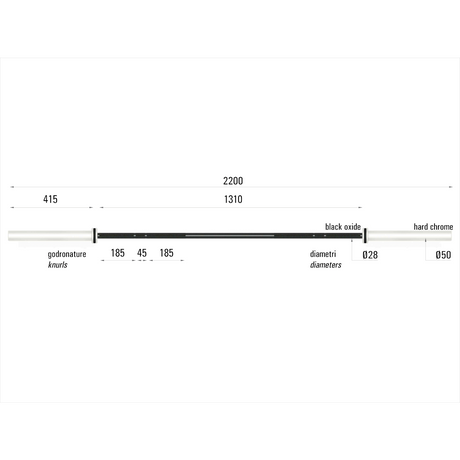Tõstekang TOORX Olympic Barbell 220 cm, 50 mm