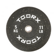 Tålig Toorx Crumb Bumper Disc med 50 mm öppning och expanderande bussning i rostfritt stål för bekväm lastning och lossning. Skivorna är tillverkade av högtryckskomprimerade gummigranulat för hög hållbarhet och elasticitet. Med tystare drift, styrka och mindre studs är Crumb Bumper-kedjorna det idealiska valet för CrossFit och funktionell träning.