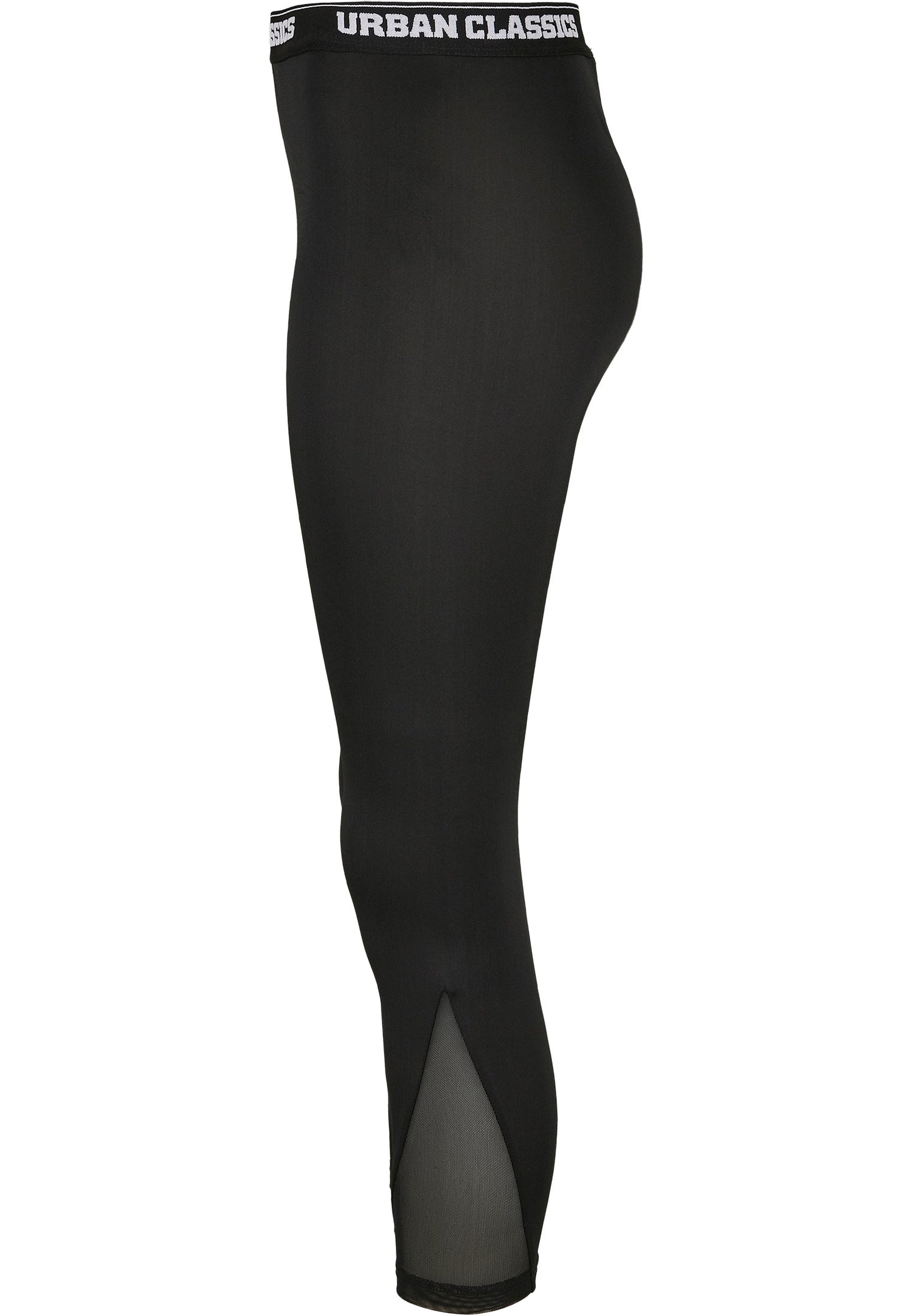 Disse super sporty leggings imponerer med deres detaljerede design og smarte funktioner. Den elastiske talje er prydet med et Urban Classics logoprint, der skaber et klart fashion statement. Højdepunkterne ved leggingsene er de transparente, trekantede indsatser i stoffet, der løber langs ydersiden af læggene - en smart detalje, der udstråler stil! Leggingsene er også skåret en smule kortere og slutter lige over anklerne.