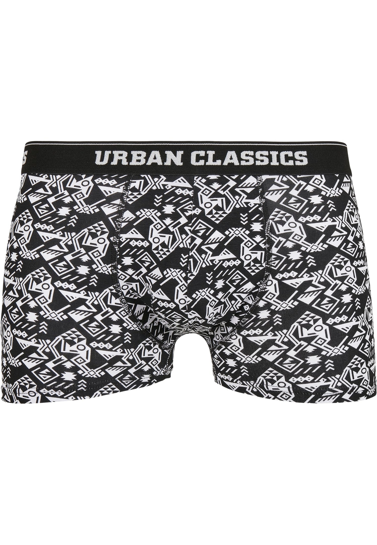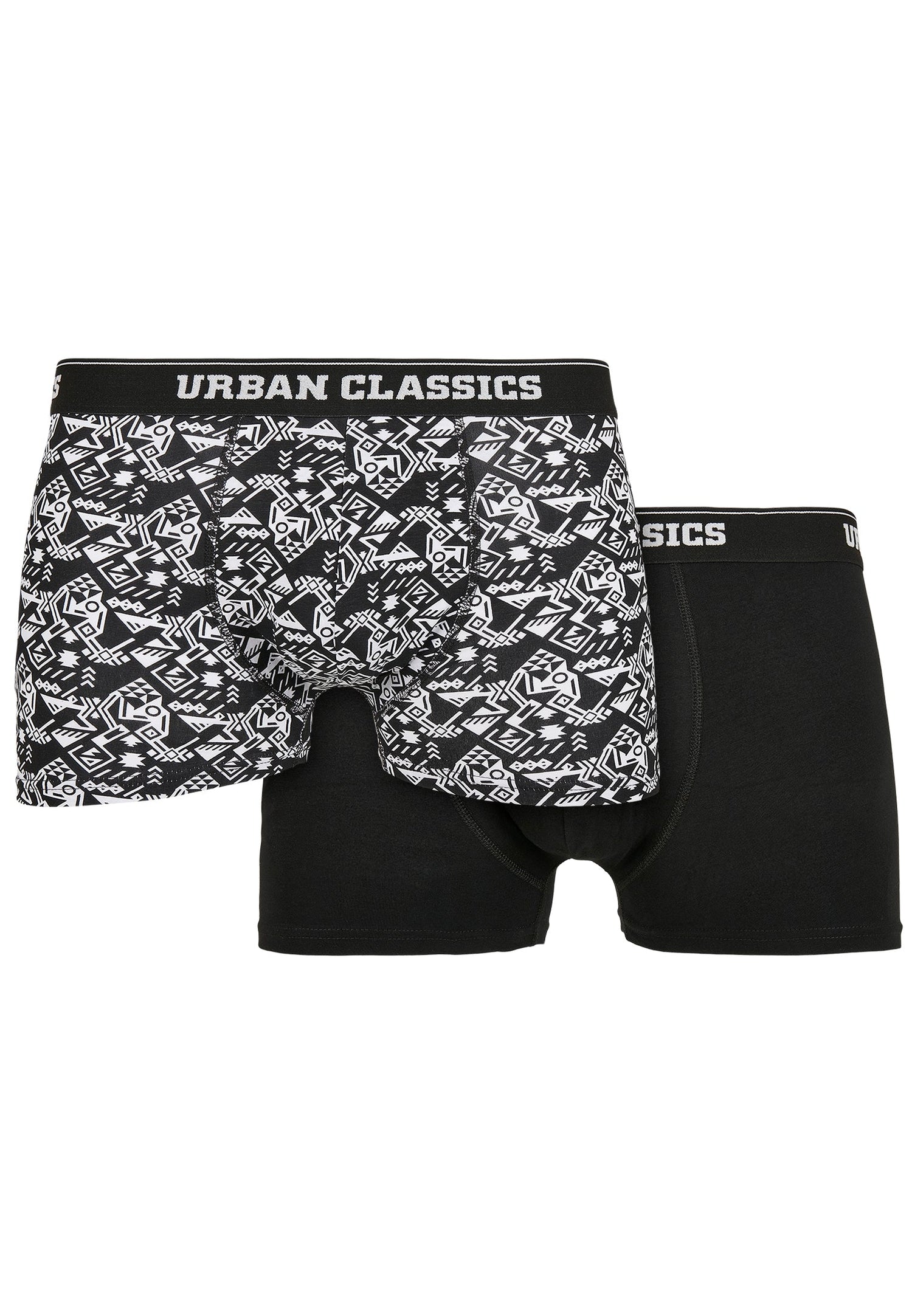 Dessa två-pack Urban Classics boxershorts erbjuder funktionella och bekväma underkläder för män i färgerna svart, vitt och rött. Mönstren på boxershortsen innefattar extravaganta tryck och enhetliga färger. Alla shorts har ett elastiskt midjeband med Urban Classics logotyptryck. Det fina stretchjerseymaterialet garanterar optimal komfort och en mjuk, säker passform.