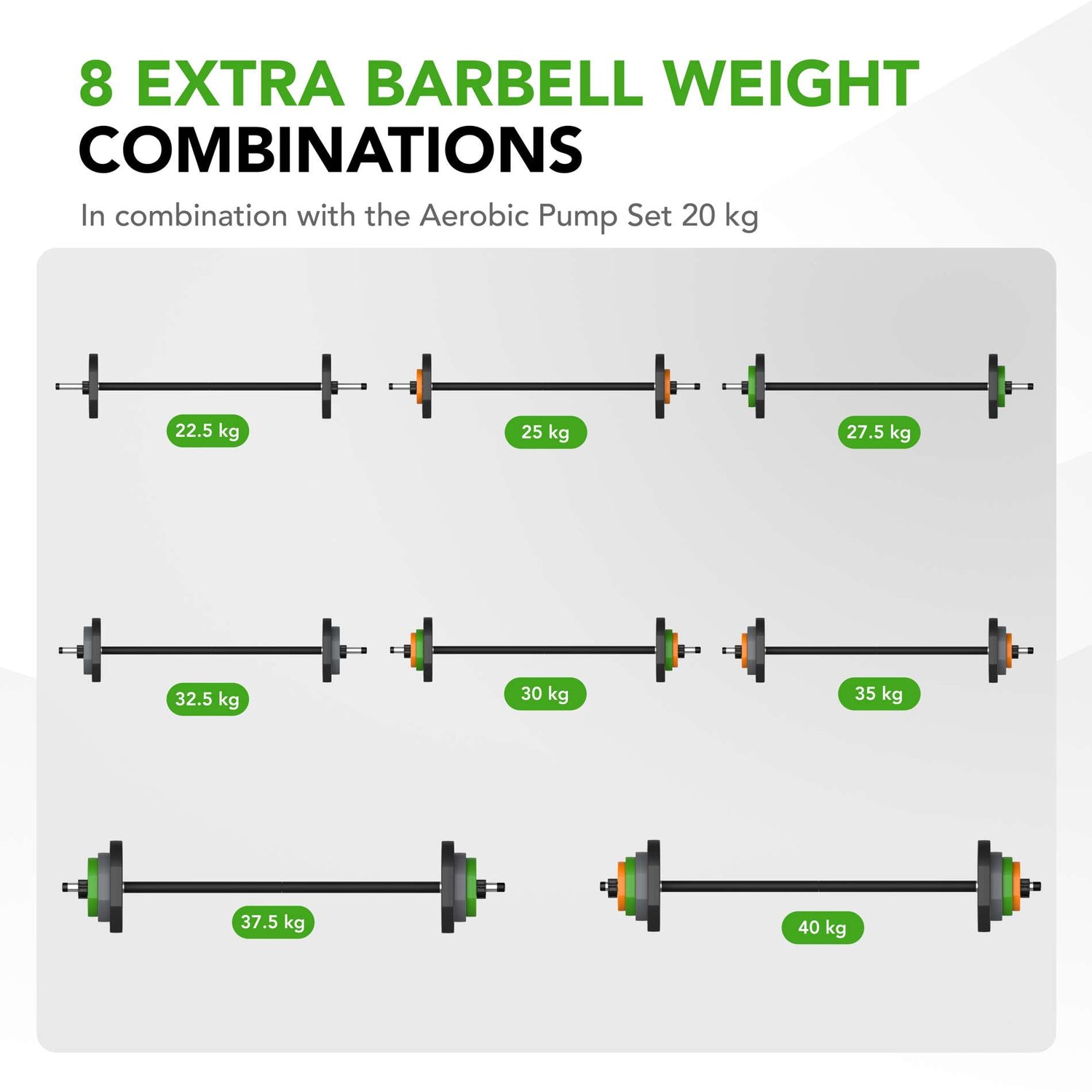 Lägg till ännu mer vikt till ditt Tunturi Aerobic Pump Set med Tunturi Aerobic Pump Weight Plates. Dessa slitstarka metallskivor med gummiöverdrag är idealiska för intensiva träningspass hemma. Handtagen på skivorna gör det enkelt att byta vikter och är också bekväma att använda för individuella övningar. De fyrkantiga kedjorna rullar inte iväg och säkerställer säkerheten i träningsområdet.