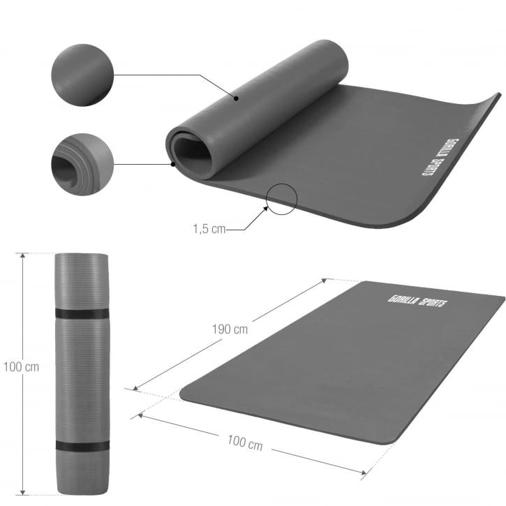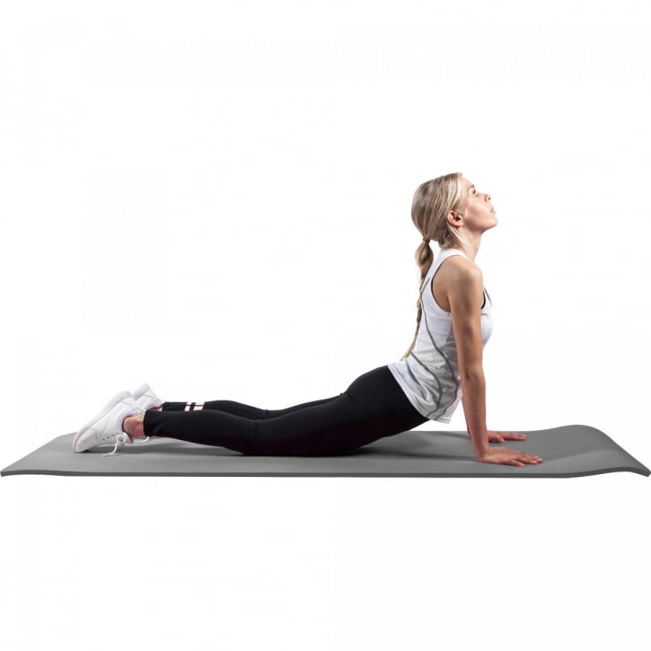 Denne yogamåtte er 190 cm lang og 100 cm bred, dvs. 40 cm bredere end en almindelig yogamåtte, og et godt alternativ til en måtte til strækning og anden mobilitetstræning.