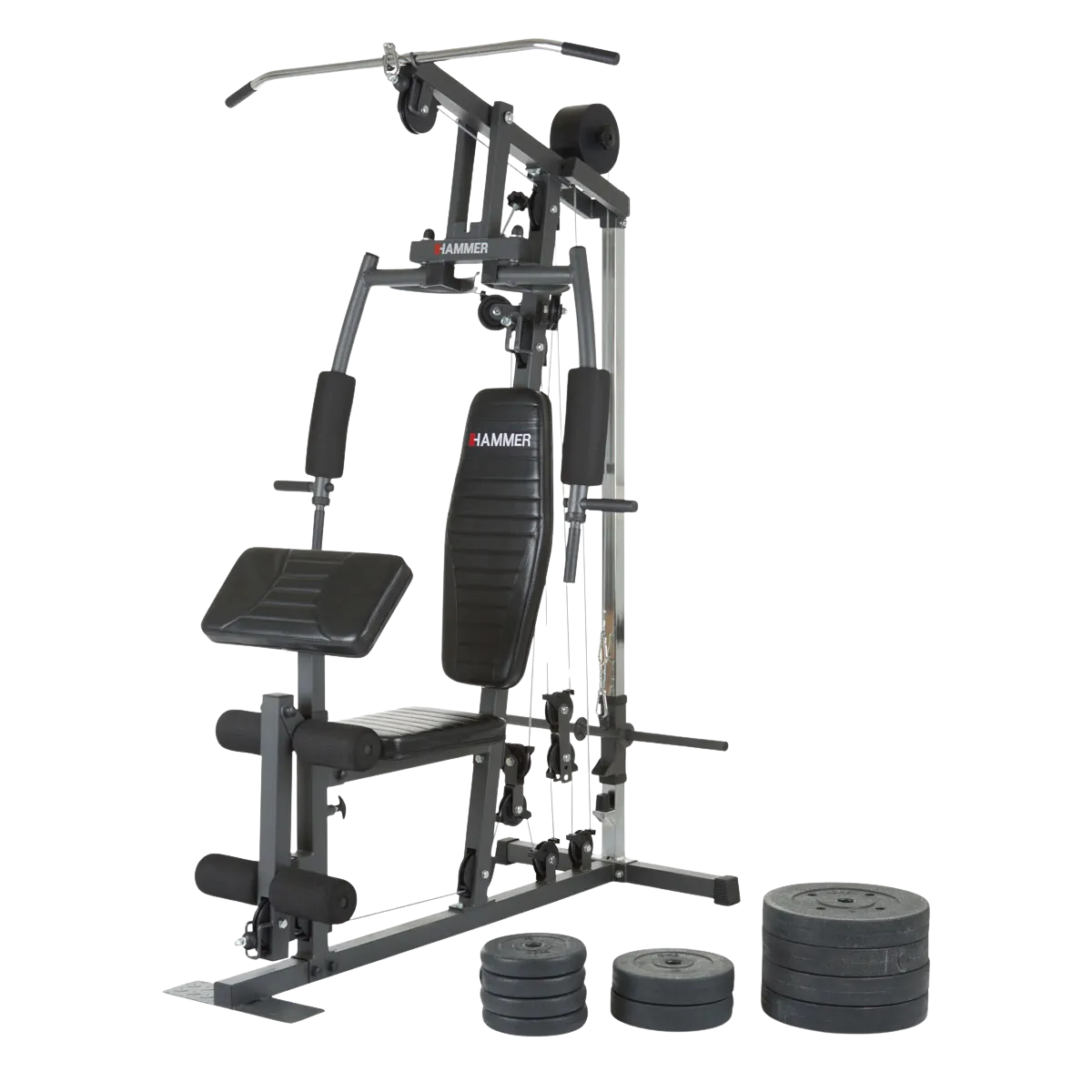 The HAMMER California XP is a real powerhouse and the ideal choice for ambitious home strength training. The set includes a 60 kg weight block with an innovative dual mechanism that allows you to achieve a training load of up to 120 kg. Thanks to its versatile exercises - such as butterfly presses, chest presses, deadlifts and leg curls - all muscle groups can be trained intensively.