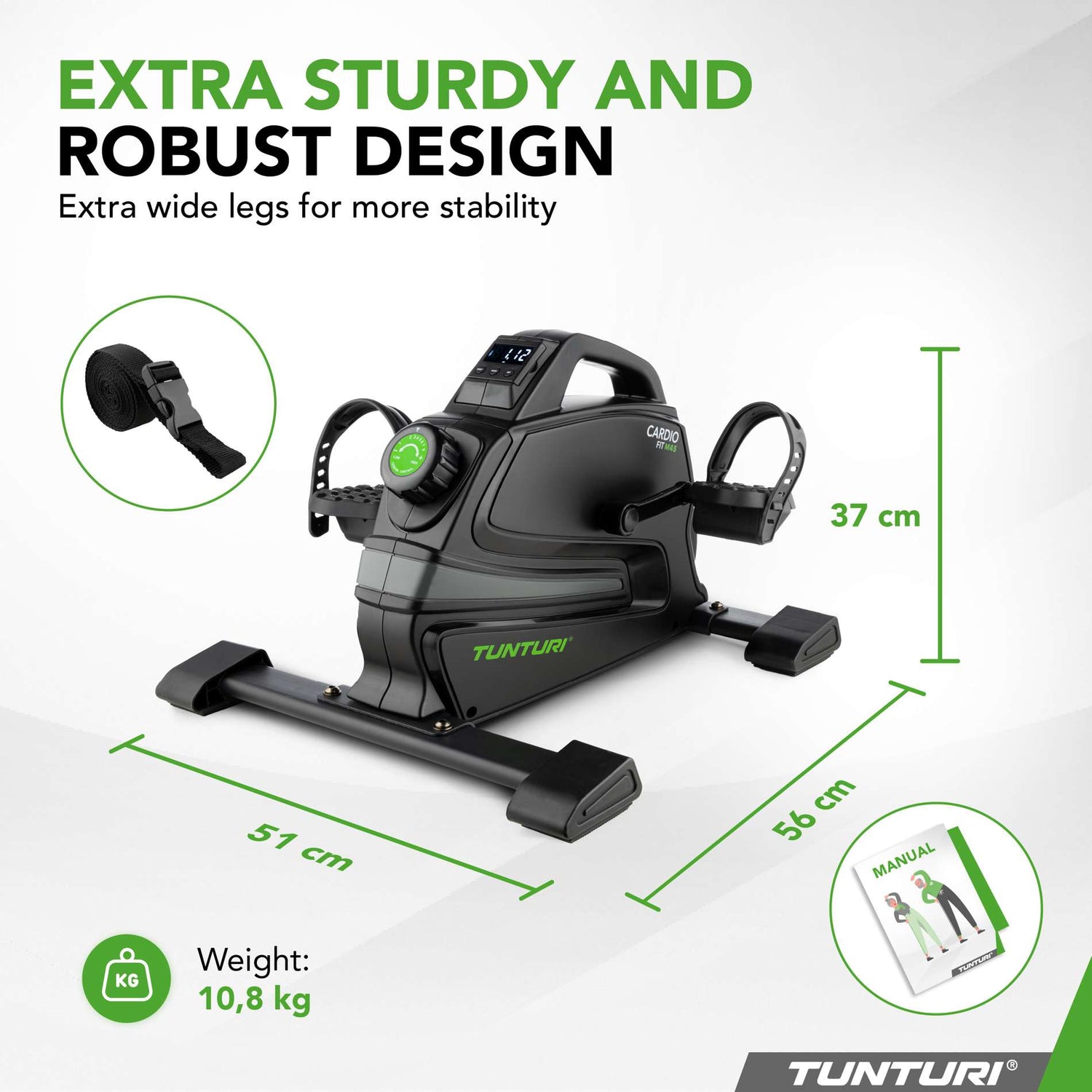 Tunturi Cardio Fit M45 minicykel är en stabil och effektiv träningsmaskin för hemmabruk. Med breda fötter, justerbara pedaler och en avtagbar monitor är den ett idealiskt verktyg för alla som vill hålla sig i form.