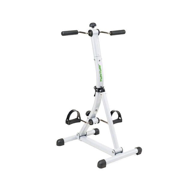 Tunturi Dual Bike Trainer er en kompakt træningscykel, som giver dig mulighed for at træne både ben- og armmuskler derhjemme. Placer stolen foran mini-cyklen og start dit træningspas. Pedalerne er justerbare, hvilket gør det nemt at tilpasse afstanden efter din komfort, og modstanden kan også justeres til forskellige træningsniveauer. Den er perfekt til en effektiv hjemmetræning, mens du ser TV.
