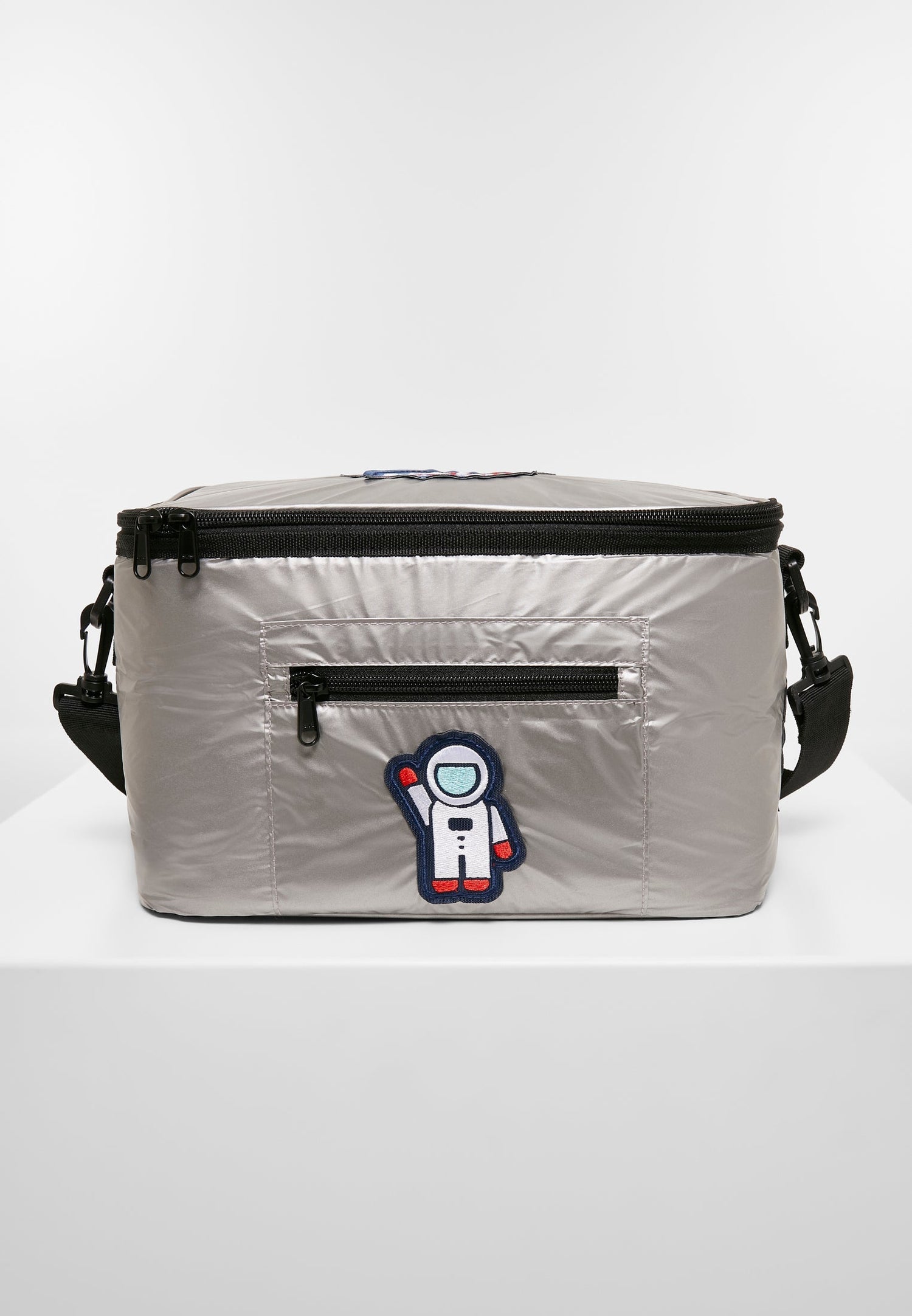 Denna silvriga och rymliga kylväska är prydd med ett broderat NASA-logga på locket. På sidorna finns två astronauter och en rymdraket fäst för att ge väskan en cool och futuristisk look.