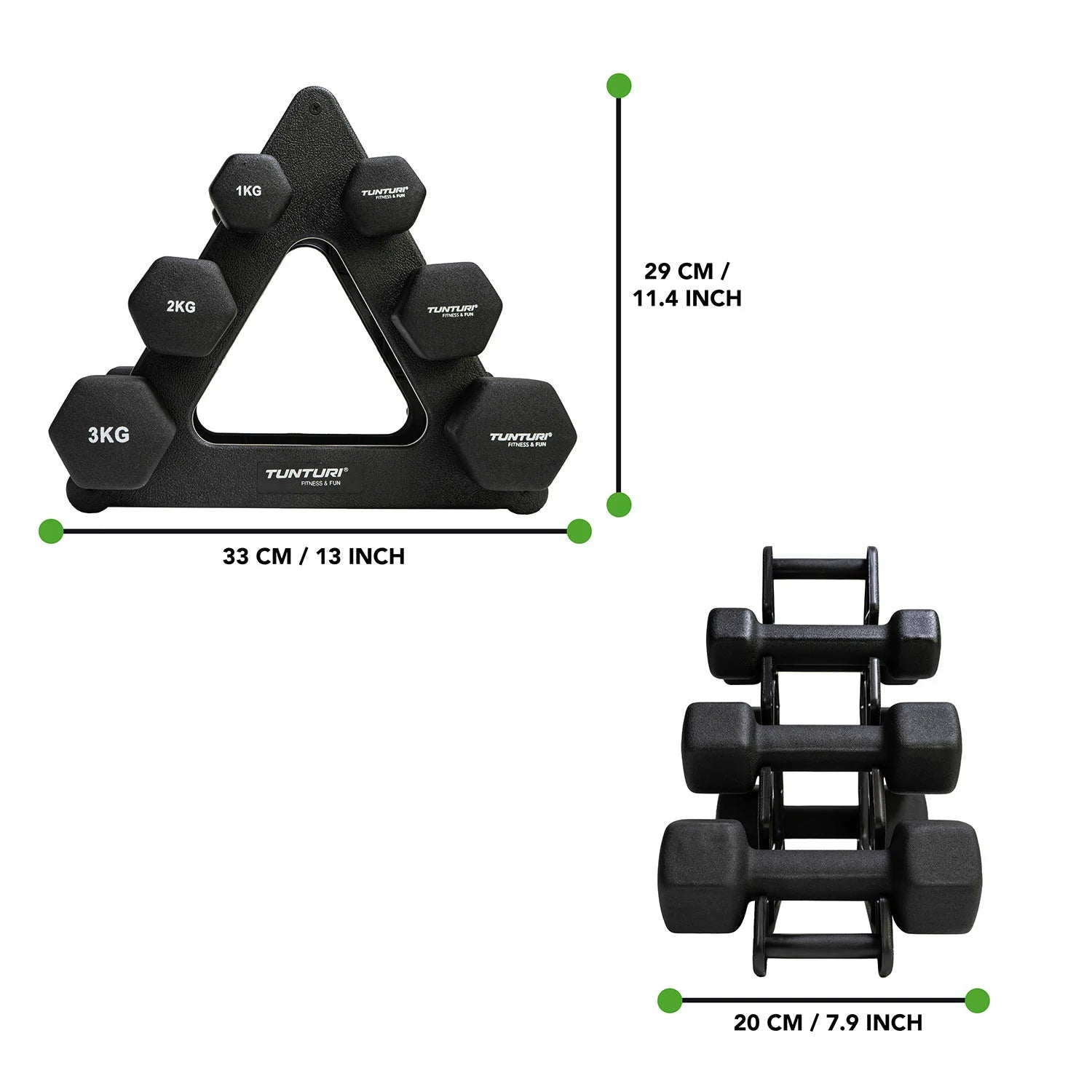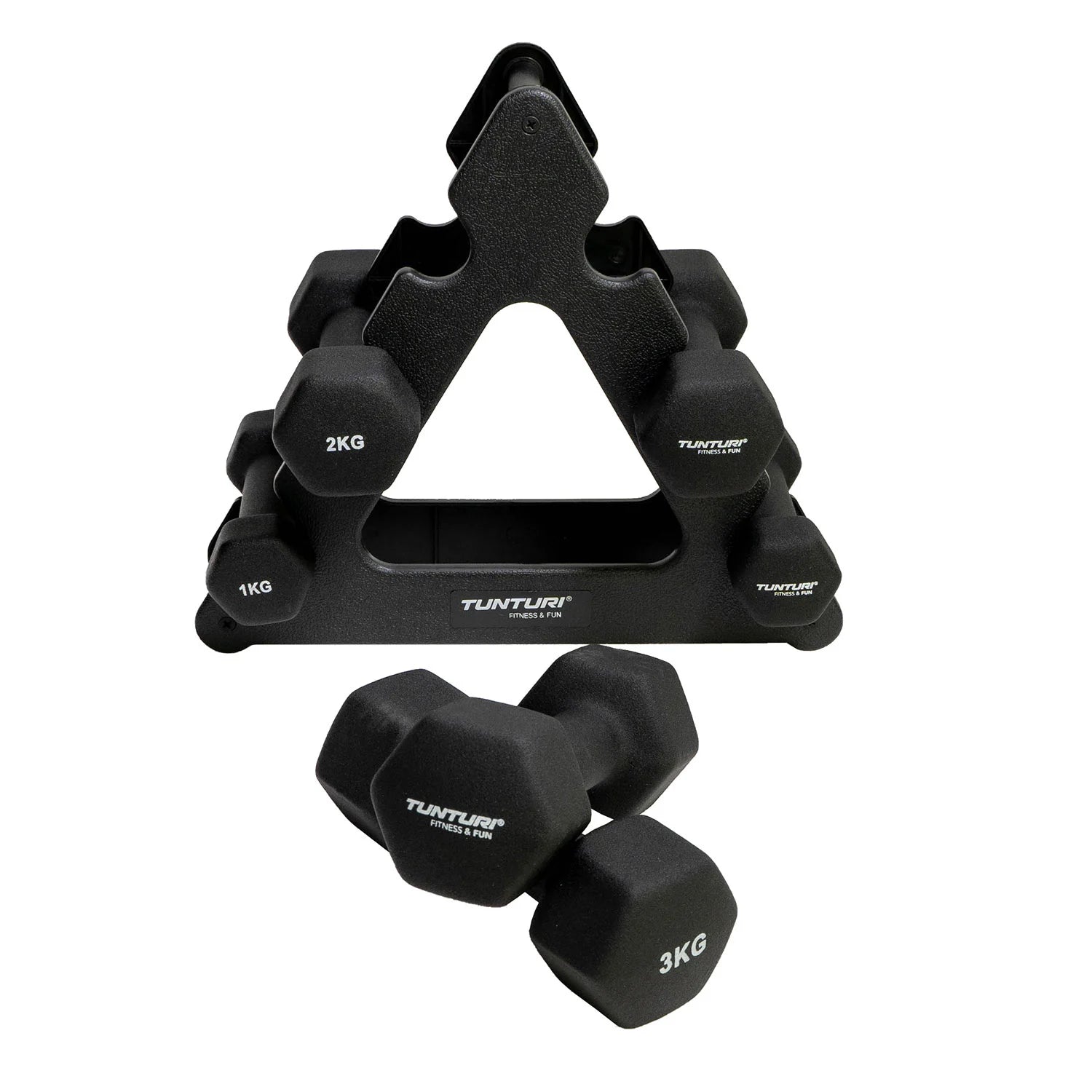 Neopren Hantelpaket TUNTURI – 3 Par Med Hantelstativ